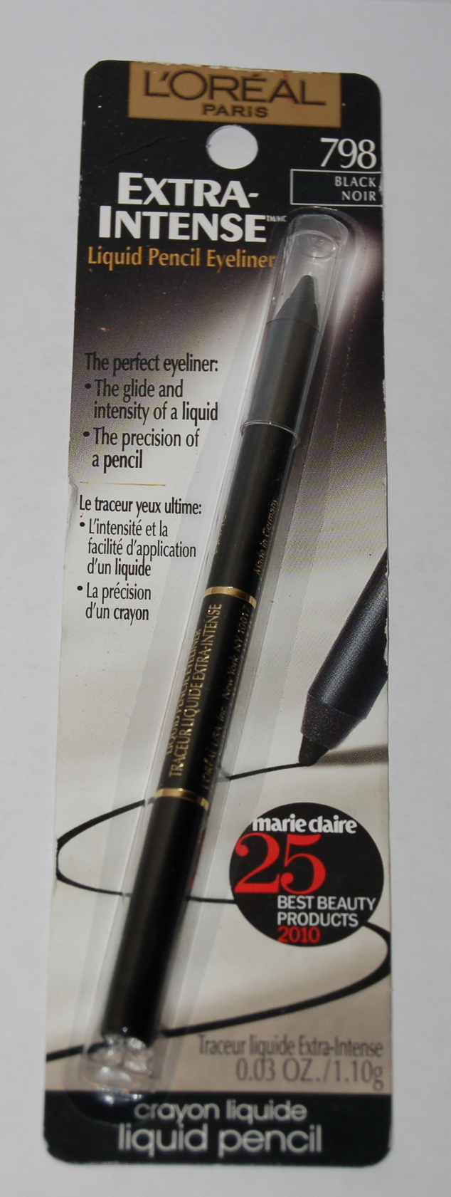 L'Oreal presents Extra-Intense Liquid Pencil Eyeliner. Now get the gliding application, intense look and long-wear of a liquid eyeliner with the easy application and control of a pencil. Rich, dramatically bold lines. Pencil formula glides on smoothly and easily. Smudge-proof, all-day wear. Ophthalmologist tested.
