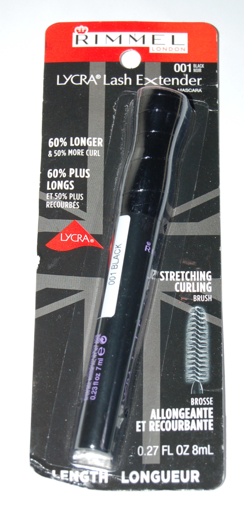 NEW Factory Sealed Rimmel Lycra Lash Extender Mascara. Strengthen and volumize your eye lashes with the Rimmel Lycra Lash Extender mascara. This Rimmel eye makeup increases the length of your eye lashes up to 60% and curls up to 50%. This smudge-proof, smear-proof, and flake-proof Rimmel mascara is Ophthalmologically tested, and perfect for everyday wear. As claimed by the makers, the Rimmel Lycra Lash Extender mascara provides 14 hours of curl hold, without extra touchup. The stretching brush of this Rimmel eye makeup covers and separates each and every lash from root to tip. Suitable for sensitive eyes and contact lens wearers, this Rimmel mascara contains vitamin E and Panthenol that nourishes your eye lashes.